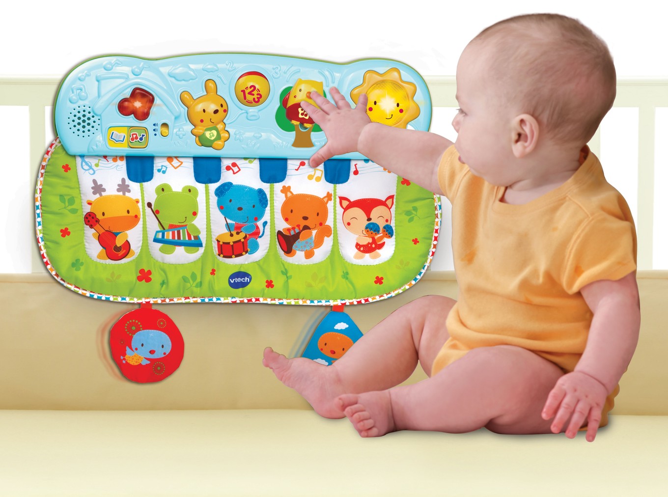 • يشغّل طفلك بأنشطة موسيقية ممتعة متنوعة، سواء كان على الأرض أو مرفقًا بالسرير.