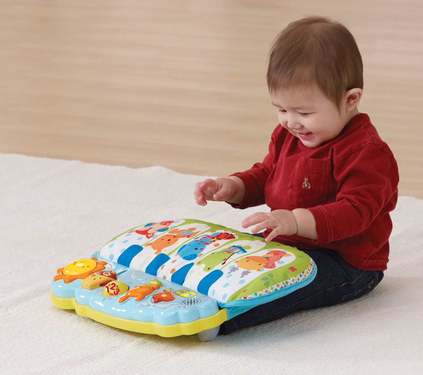 • يتميز البيانو بملمس ناعم يحتوي على خمسة مفاتيح بيانو بشكل حيوانات تقدم الموسيقى والآلات.