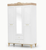 تتميز خزانة كاونتري بجودة الخشب العالية واللون الأبيض المدمج بقاعدة من الخشب الطبيعي، وأبوابها المتينة والأنيقة حيث أنها مصممة لإعطاء طابع حيوي وعصري. مساحتها واسعة لاستيعاب أكبر قدر ممكن من التخزين. كما أنها تحتوي على مرآه على الدفات من الخارج. أبعادها: العرض 136سم، الارتفاع 209 سم، العمق 55 سم.