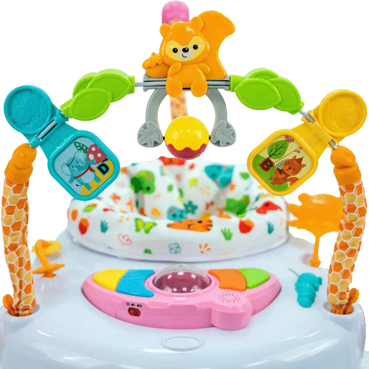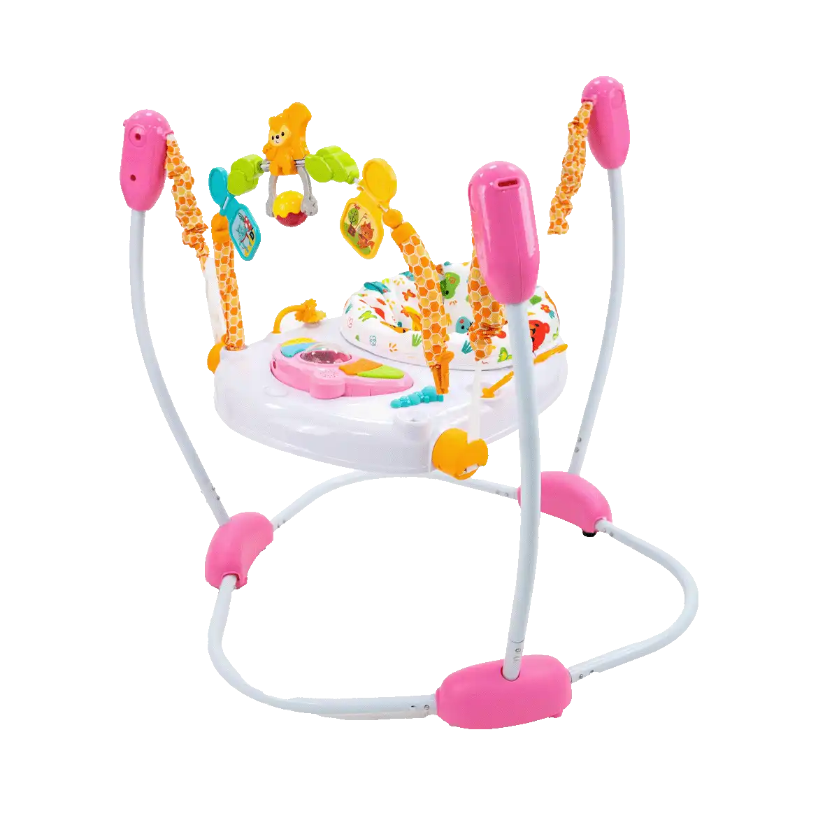• المشاية بها 4 عجلات توفر الثبات والتوازن وتطور التوازن ومهارة الحركة، وبمساعدة طفلك سوف يستدير ويشعر بالأمان في خطواته.