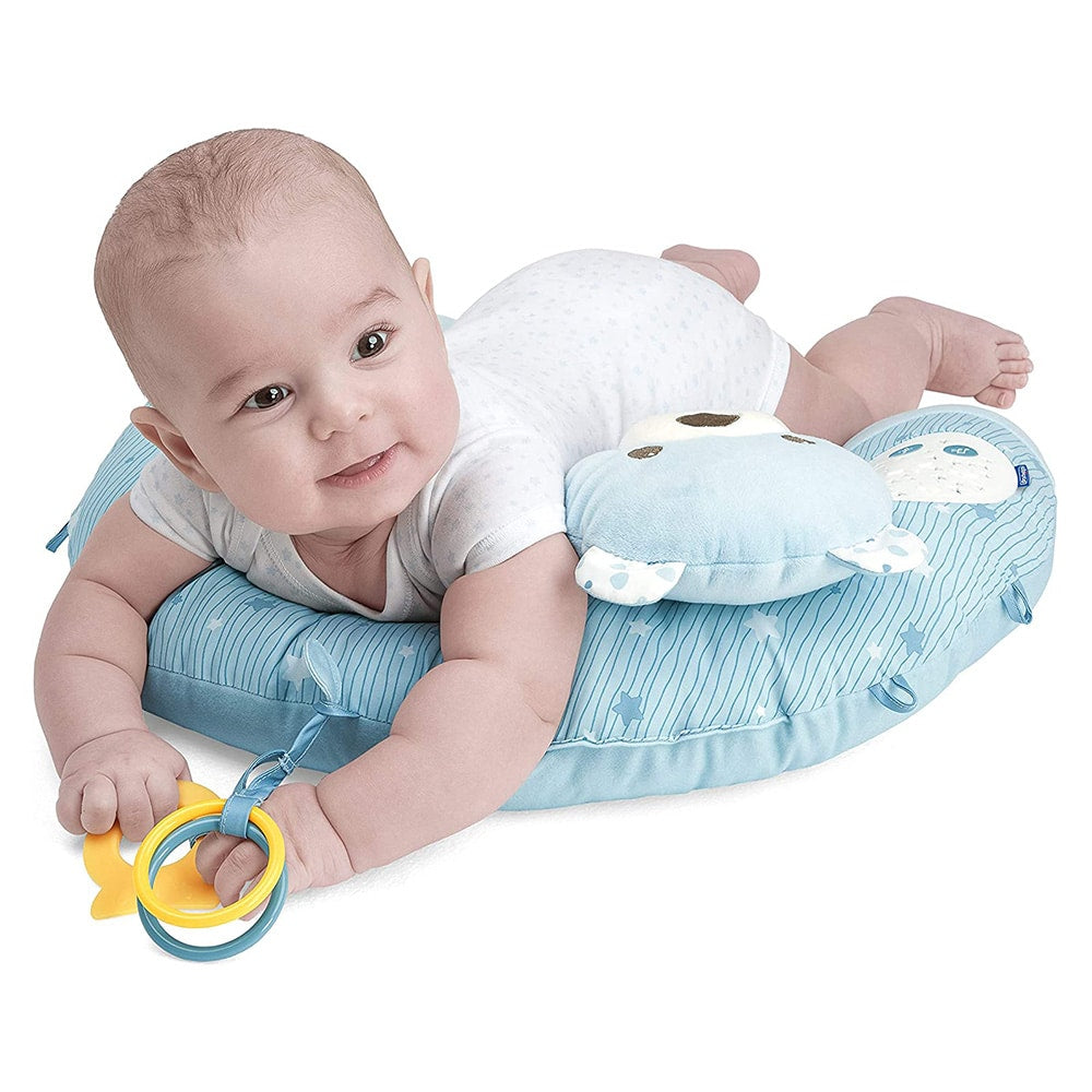 • Full of activities: The surface is equipped with many fun activities to play with, a mirror that employs the baby, a soft tooth that relieves toothache pain and two rings to grab and rattle. Soft and pleasant. . A comforting pillow for the baby's crib, with a soft teddy bear and an activity surface that prepares and adapts itself to the baby's growth stage.