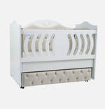 •The crib features a modern design with elegant upholstery to ensure increased safety and comfort for the baby. Also, there is an elegant upholstery covering the drawer, giving it an elegant look.