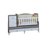 •It can be converted from a newborn crib to a child's bed until approximately 12 years old, with dimensions of 170/60. The swinging bed feature can be used when flipped to become a study desk. Also, the storage unit can be used as a desk drawers unit.