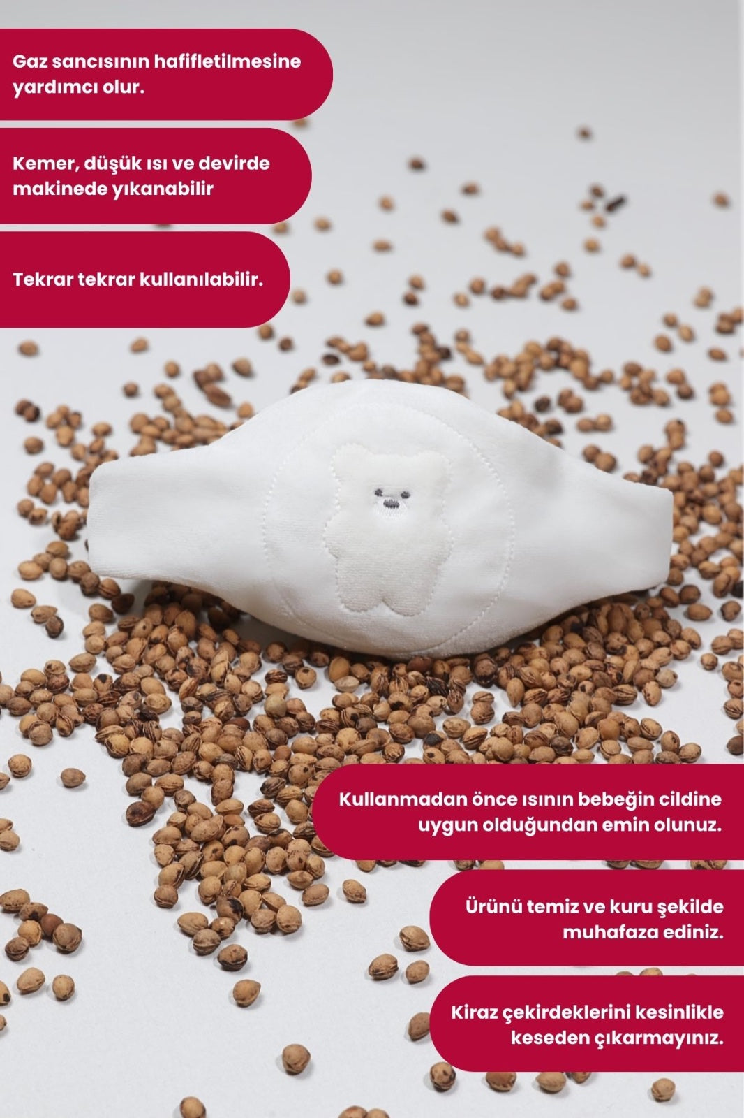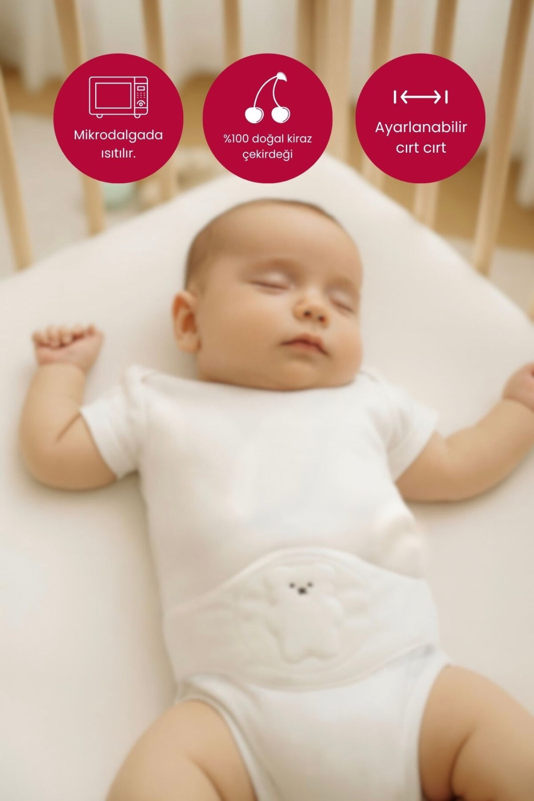• It works to keep your child's stomach warm, reducing colic.