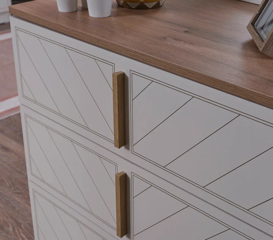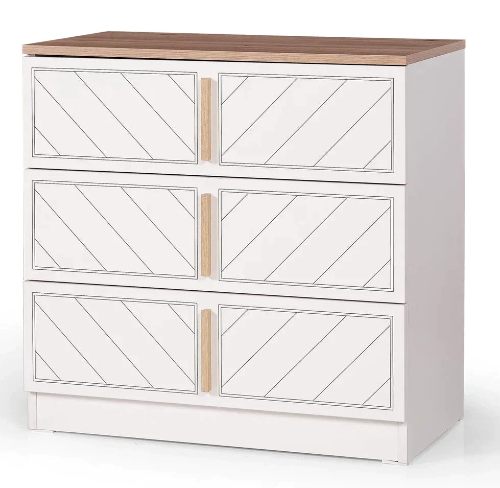 Oscar dresser consists of 3 separate drawers, apart from the mirror, harmonizing with the distinctive design of the room. Its presence is essential for storage and utilizing the provided space. There is also a dedicated space for the mirror, adding an elegant touch to the room. Dimensions: Width 80cm, Height 79 cm, Depth 45 cm.